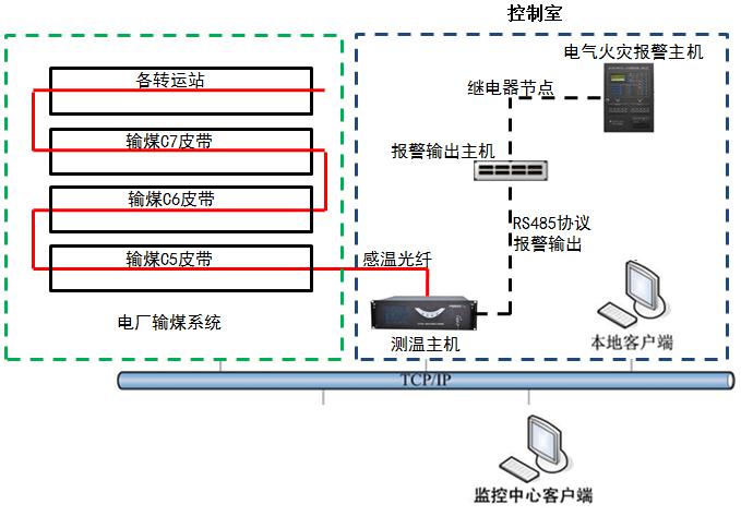 深圳市迅捷光通科技有限公司基于分布式光纖傳感技術(shù)研制開(kāi)發(fā)的新型火災(zāi)探測(cè)系統(tǒng),通過(guò)實(shí)時(shí)檢測(cè)感溫光纜中背向散射光信號(hào)強(qiáng)度隨溫度的變化情況,可實(shí)現(xiàn)對(duì)礦井電力系統(tǒng)傳輸電纜及輸煤皮帶的在線實(shí)時(shí)溫度監(jiān)控和火災(zāi)預(yù)警報(bào)警。