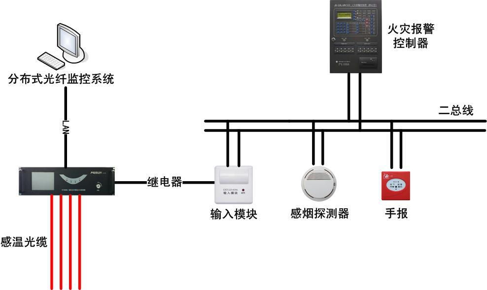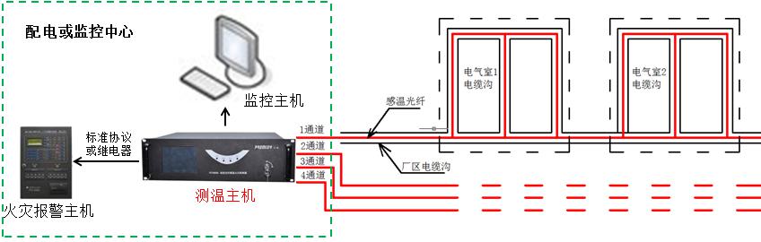 為此,迅捷光通科技有限公司適時(shí)地開發(fā)出線型光纖感溫火災(zāi)探測(cè)系統(tǒng),實(shí)時(shí)對(duì)電纜進(jìn)行溫度監(jiān)測(cè),并進(jìn)行預(yù)警和報(bào)警。該系統(tǒng)采用了全光纖傳感無源測(cè)溫方式,消除了監(jiān)測(cè)系統(tǒng)自身的安全隱患,極大提高了監(jiān)測(cè)系統(tǒng)對(duì)電力溫度監(jiān)測(cè)的可用性。該光纖測(cè)溫系統(tǒng)被很多煤礦、電廠、大型廠礦和供電公司使用,大大降低了火災(zāi)事故的發(fā)生,真正地做到防患于未然,符合電力行業(yè)“安全第一,預(yù)防為主”的安全思想。